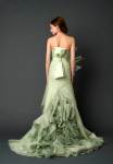 She brings drama, romance, exaggerated ruffles on full skirts, colors ranging from light green to gold to greyish brown. As well as her signature looks that include fine laces and organza, belts and mermaid styles.