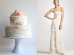 I love when Wedding Cakes include details inspired by the Brides Wedding Dress. This can be done simply by adding a few elements inspired by the Wedding Dress or matching the style and texture of the cake to the exact style and fabric of the dress. It is a great way to maintain the wedding style throughout every aspect of the Wedding.