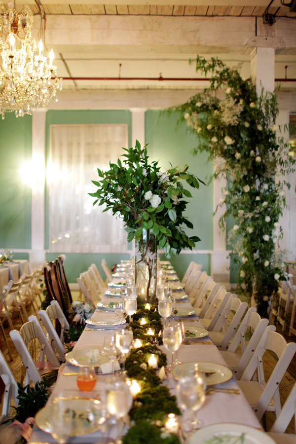 Personally, I happen to love outdoor weddings and events, but outdoor venues aren’t always practical or available for the season you have in mind to marry. Which is why I love to bring the outdoors – in; by planning garden style reception spaces inside reception venues. They allow you to have the feeling of being surrounded by flowers, trees, moss, etc. throughout the year, no rain plan needed. Here are some lovely ideas that can work for a range of budgets and spaces: