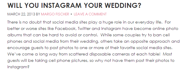 2) Website – Link your wedding website to your social media sites so that friends/family can connect with you and share images.