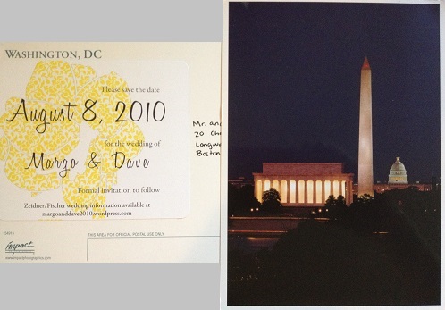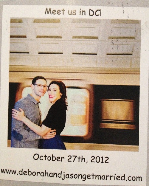 With DC as our backdrop, there are tons of cute ideas to incorporate. For my own wedding, my husband and I purchased DC postcards and created a sticker for the back with our information. One of my couples created their save-the-date using the DC Flag as the backdrop. And a close friend included her engagement session with a picture of the DC Metro: