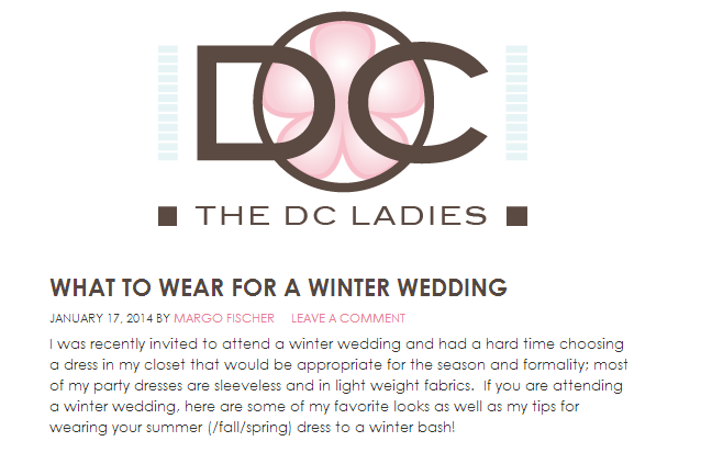 I was recently invited to attend a winter wedding and had a hard time choosing a dress in my closet that would be appropriate for the season and formality; most of my party dresses are sleeveless and in light weight fabrics. I know that I am not alone when I have my “nothing to wear” moments, but simple swaps and fixes can help take your summer (/fall/spring) dress to a winter wedding. Check out my full post on The DC Ladies, to see some of my favorite new winter looks at any price.
