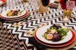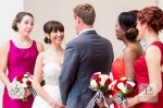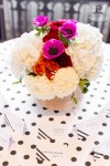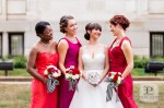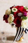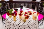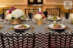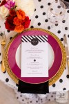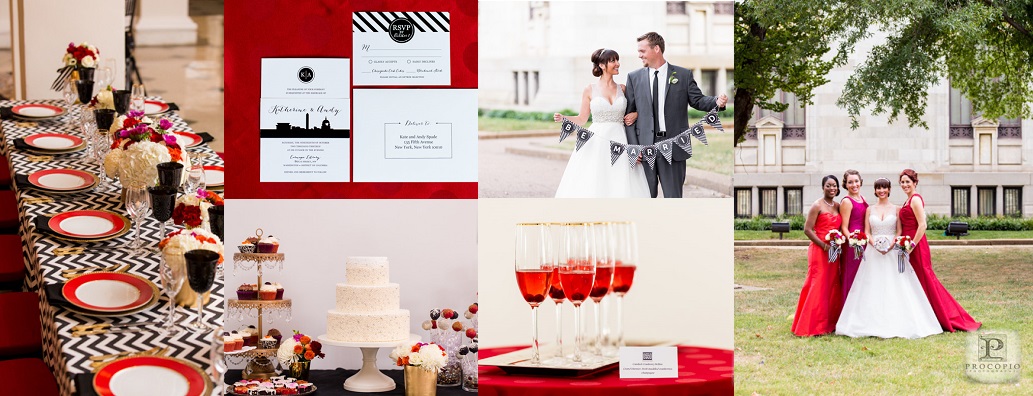 Last year I was fortunate to collaborate with some of the best DC vendors for a styled wedding shoot, which was featured on The DC Ladies this past Fall! Tasked with organizing our “mock wedding”, creating a theme and styling the event, I came up with a bold and bright look. I chose our Kate Spade theme to embody a modern DC couple; one that blends current trends with classic details and plays with color, texture and patterns to create a glamorous style that is uniquely their own (and avoids being overly matchy-matchy). Our Kate Spade in DC Wedding incorporated a black and white patterned look with red, orange, magenta and gold accents and was set at Carnegie Library with catering by 550 Events. Our brooch bouquet by Eight Tree Street and wedding cake by Kendall’s Cakes perfectly complimented our sparkly crystal and pearl wedding dress from Ellie’s Bridal Boutique. And one of my favorite details, was our invitation set to include a nod to Washington, DC architecture, designed by Tabibi Design. In addition, our shoot included a sweet dessert table with cake pops, cupcakes, and heart shaped brownies and blondies by Huda’s Sweet Bee Bakery. We were also lucky to have diamond rings and bridal jewelry from Diamond Connects, bridesmaid jewelry from Rene Kauder – Independent Stylist for Stella & Dot and garters from The Garter Girl.