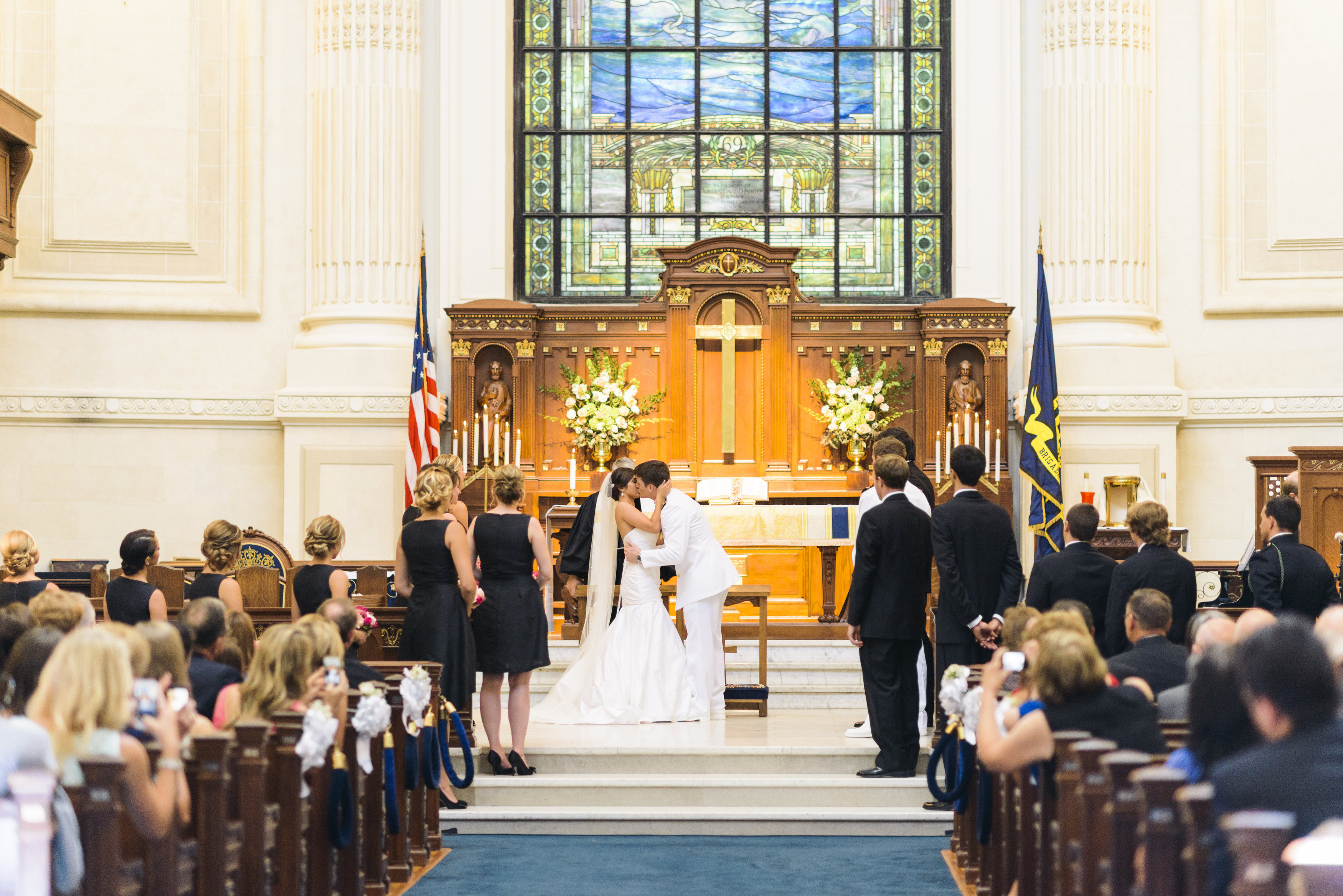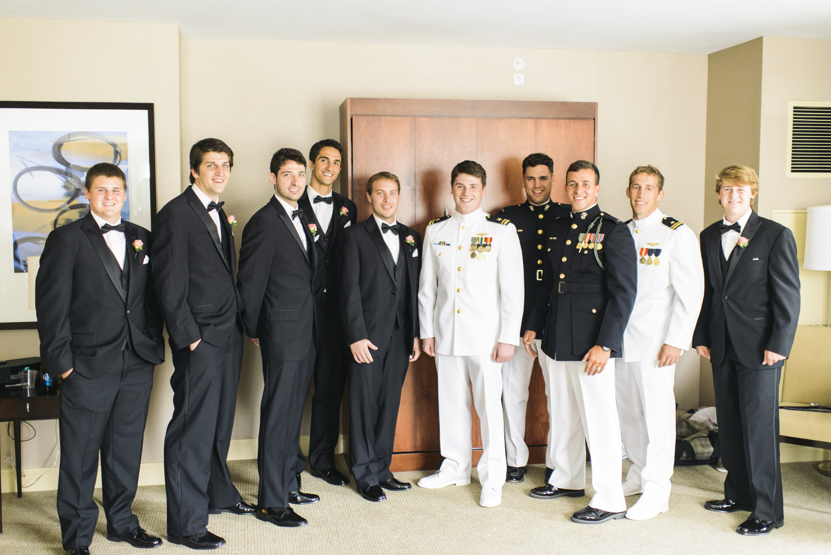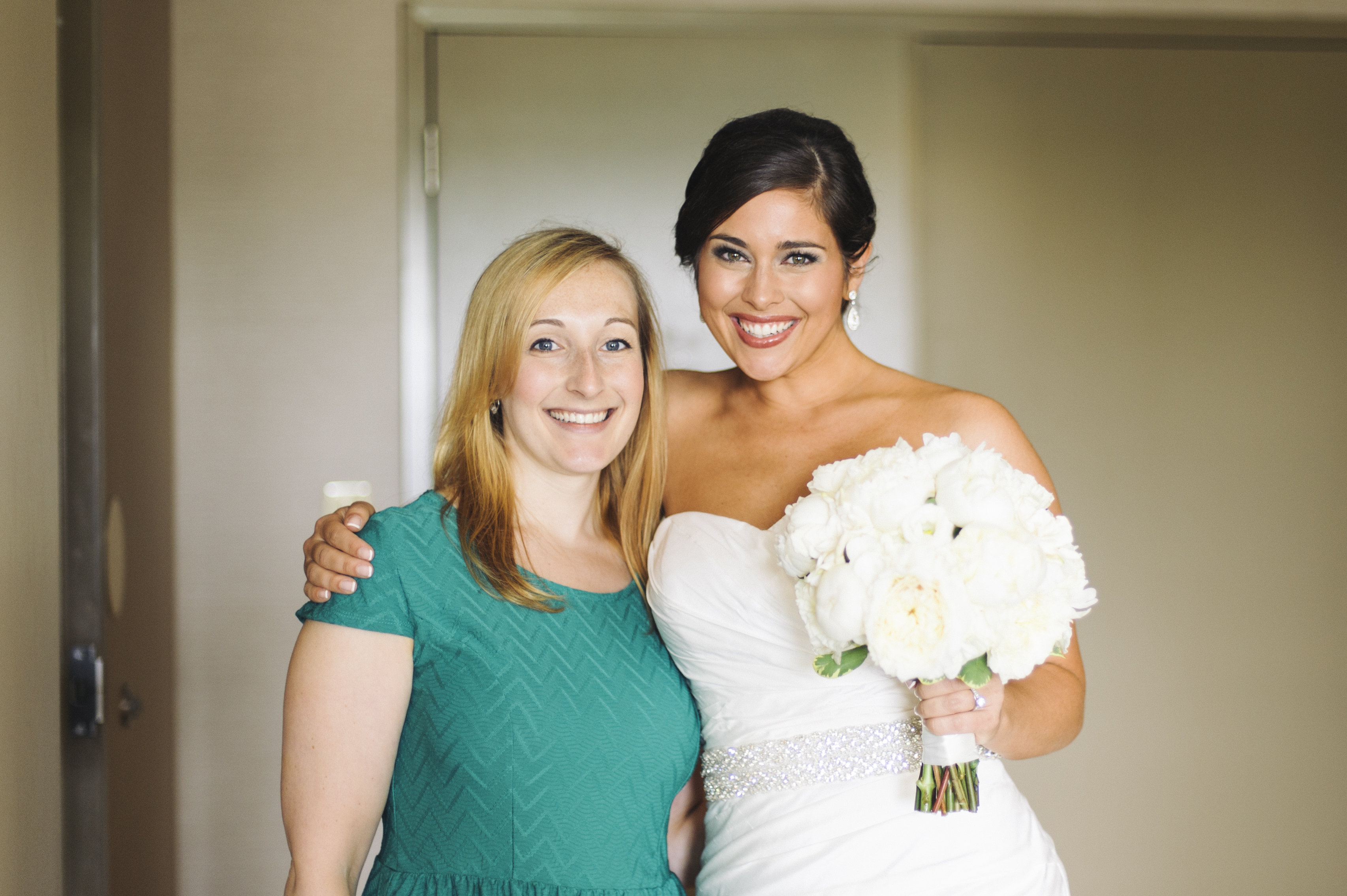 Last summer I had the pleasure to work with Rachael and Russ for their Annapolis wedding at the Naval Academy Chapel and The Westin Annapolis. Their wedding was incredibly fun and special; the two met when Rachael was in college and Russ was at the Naval Academy. Almost their entire guest list traveled from Ohio, Pittsburgh and around the country to Annapolis for the weekend. Here is part 1 of their day; getting ready and the beautiful ceremony at the Naval Academy Chapel. Photographer Krista A. Jones did an incredible job photographing the entire day!Rachael and her bridesmaids started the day getting ready at The Westin. The whole morning Rachael glowed, you could just tell how excited and happy she was to get married. She also had the best bridal accessory, a stunning ivory peony bouquet from Cache Fleur.I was so touched when Rachael asked Krista to take her picture with me!Russ and his groomsmen spent the morning hanging and out and getting ready at The Westin. Rachael and Russ chose not to see each other before their ceremony. I coordinated with their vendors and had the gentlemen depart first so that Russ wouldn’t see his bride until she walked down the aisle.The Naval Academy Chapel is definitely one of my favorite ceremony settings. It is just stunning!