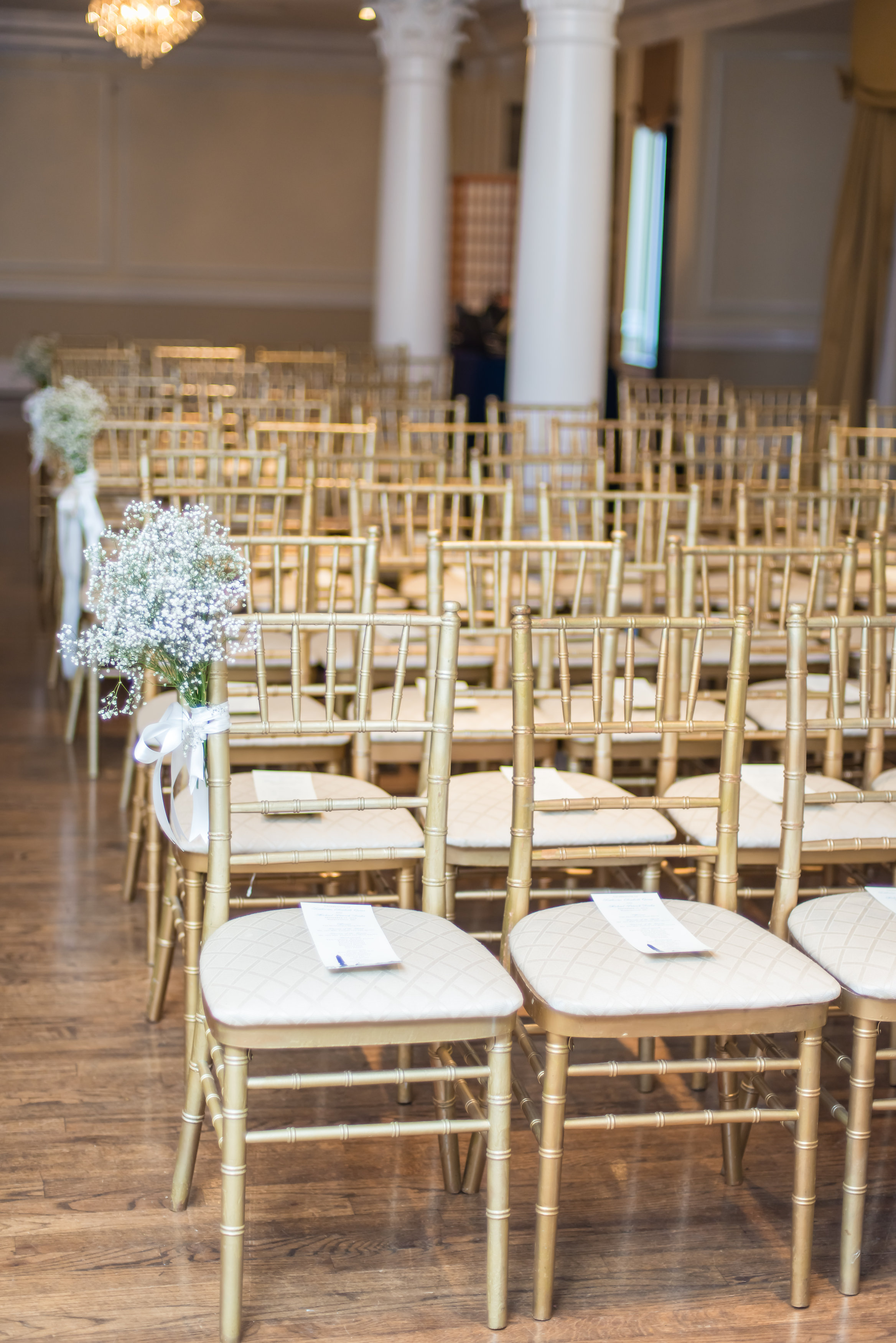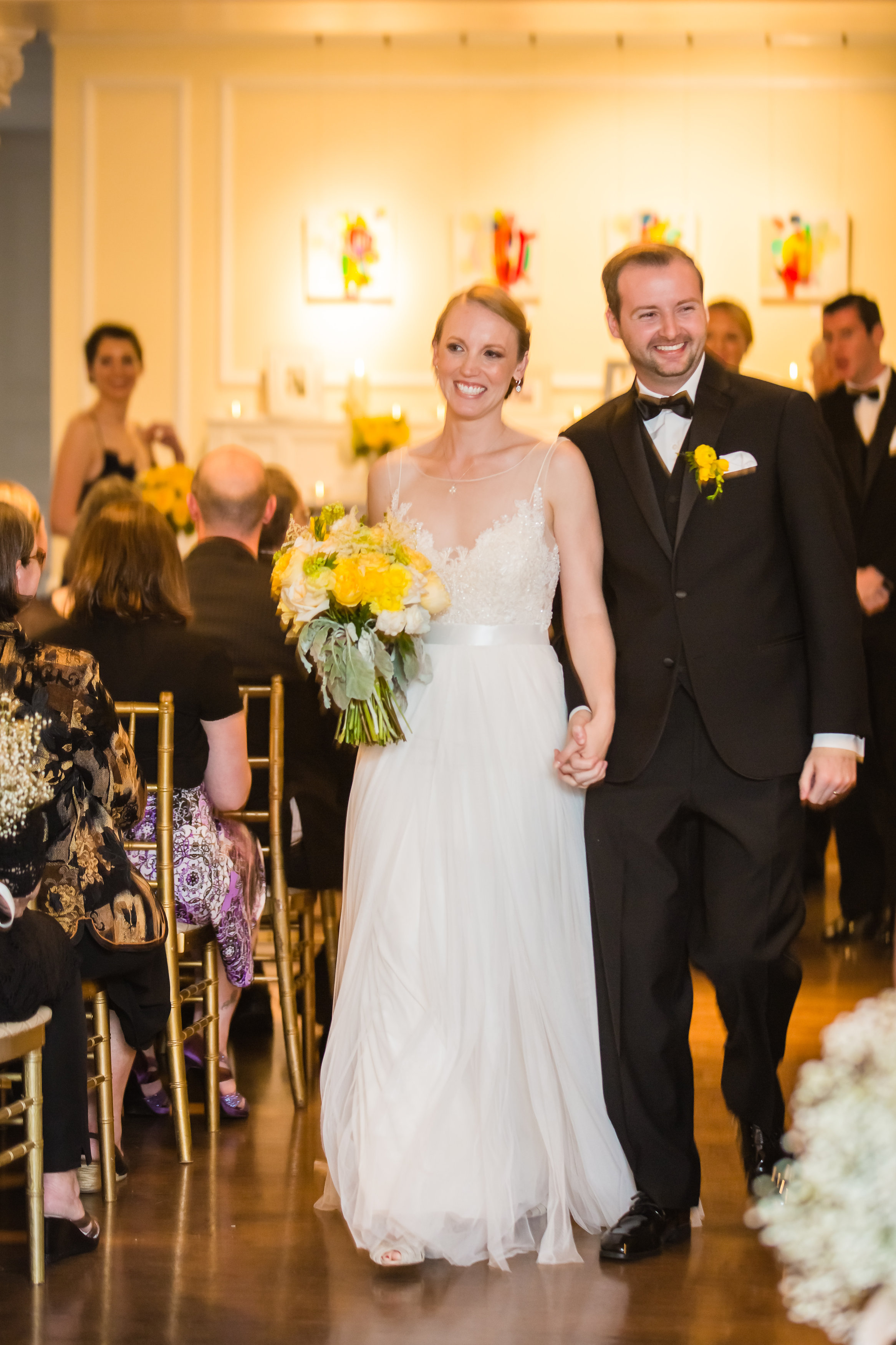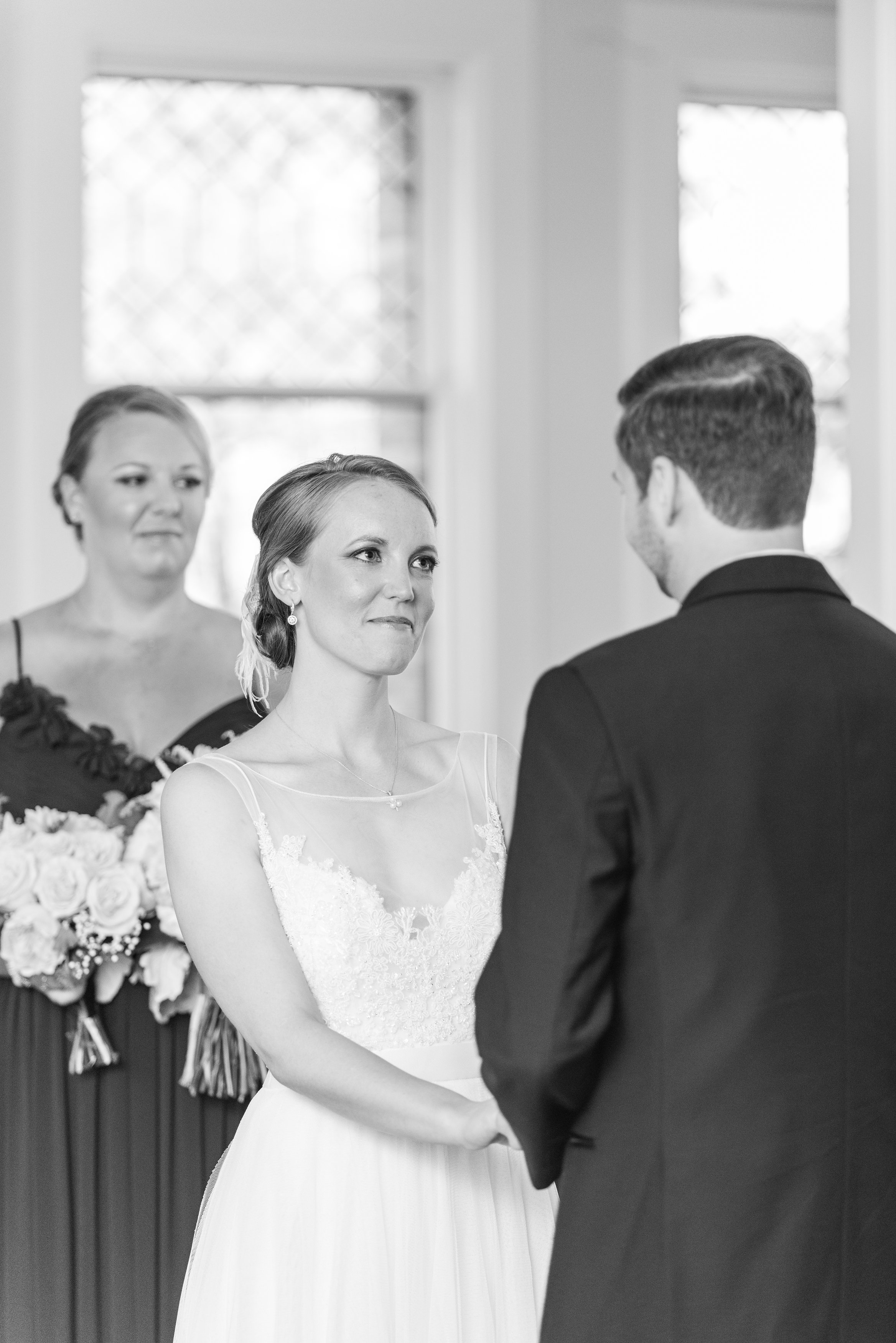 Katy and Mike chose to get married against the fireplace in the ballroom at The Whittemore House. Family photos, candles, bird cages and pretty floral arraignments were a lovely backdrop.