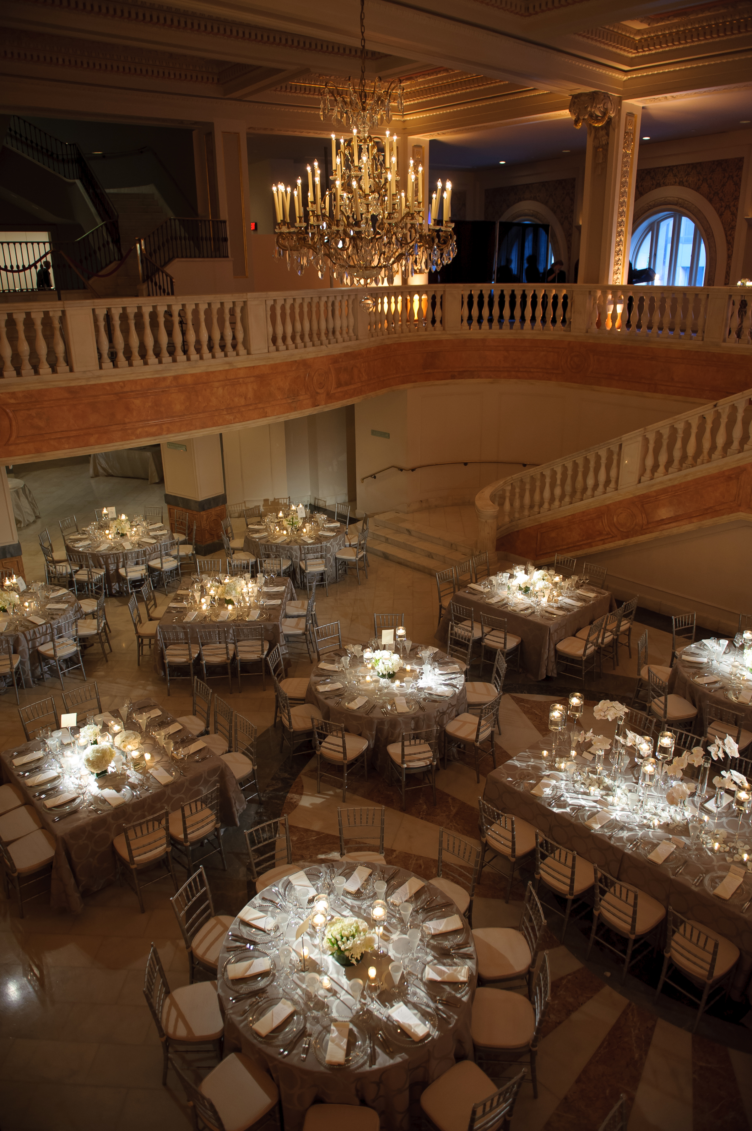 Last year I had the pleasure to work with Jordan and Justin for their stunning wedding at the National Museum of Women in the Arts in Washington, DC. Jordan and Justin met in NYC and live in Chicago, so they planned their wedding with the help of Jordan’s parents who live in the district. It was wonderful to work with Jordan and Justin (and parents) as their wedding planner. They have a great style and their vision for the wedding was something that was elegant, but not stuffy, with an emphasis on great food and music and a beautiful atmosphere. Their wedding included a gorgeous chuppah with suspended orchids by Edge Floral Event Designers. I loved the romantic yet modern, white and gray details we incorporated for Jordan and Justin’s wedding. Photographer Matt Mendelsohn did a great job capturing the love and events as the day unfolded. This wedding was also featured on United With Love, see part 1 and part 2.