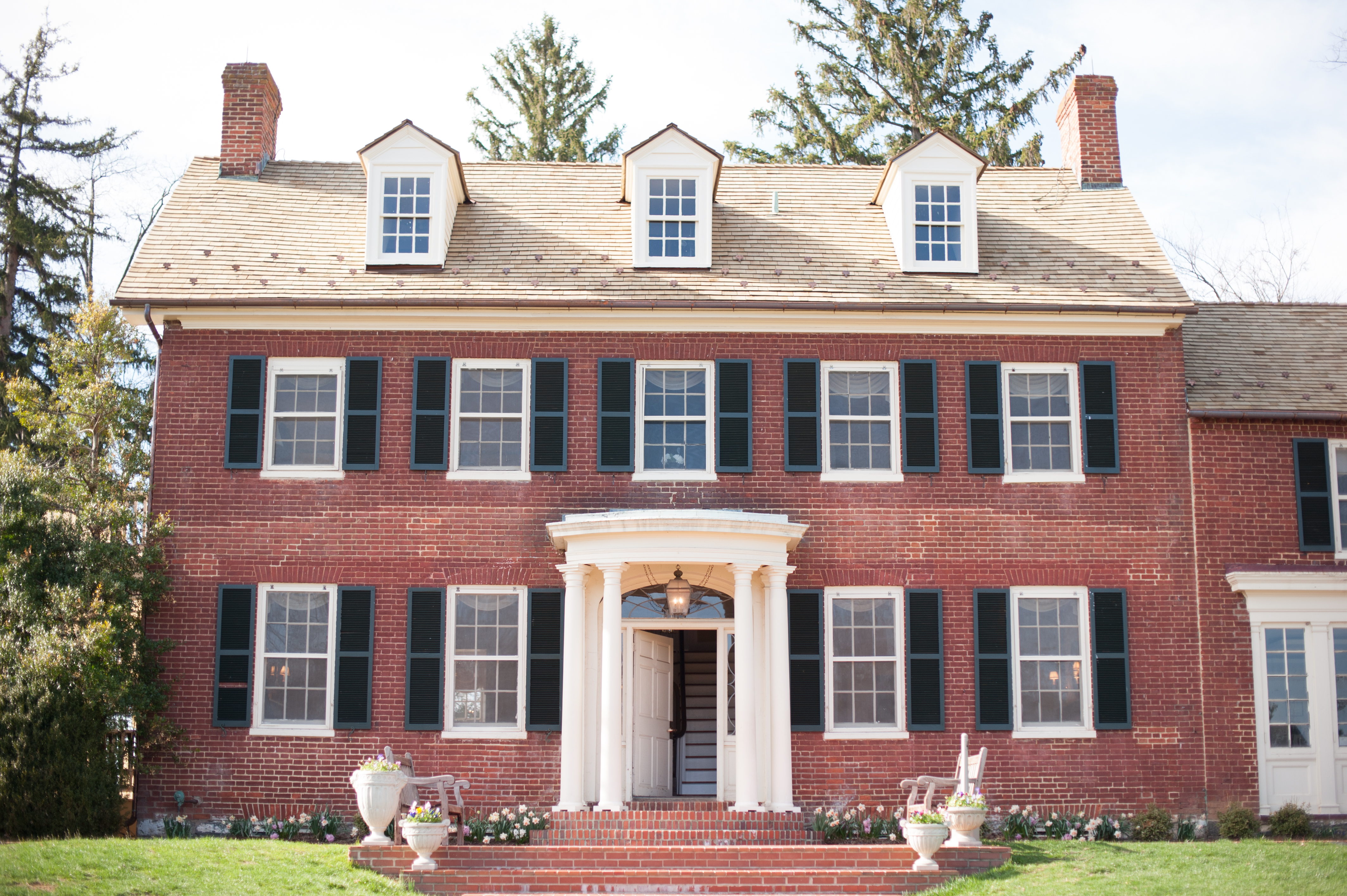 Woodlawn Manor in Sandy Spring, MD was the perfect location for our styled wedding. The beautiful brick manor house is set against green pastures with a historic stone barn on the property. Today this is home to one of the public parks in Montgomery County and is a working horse farm.