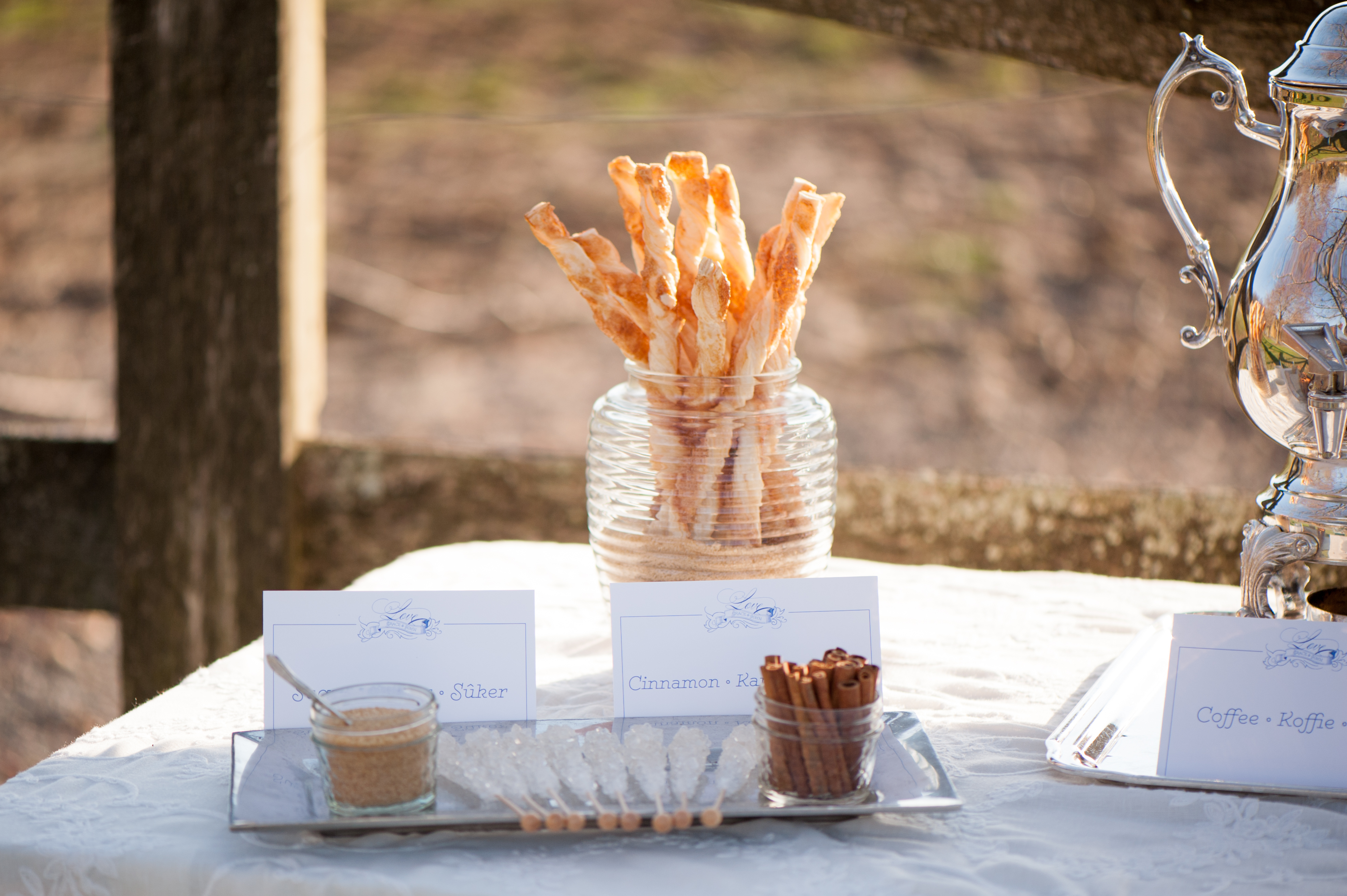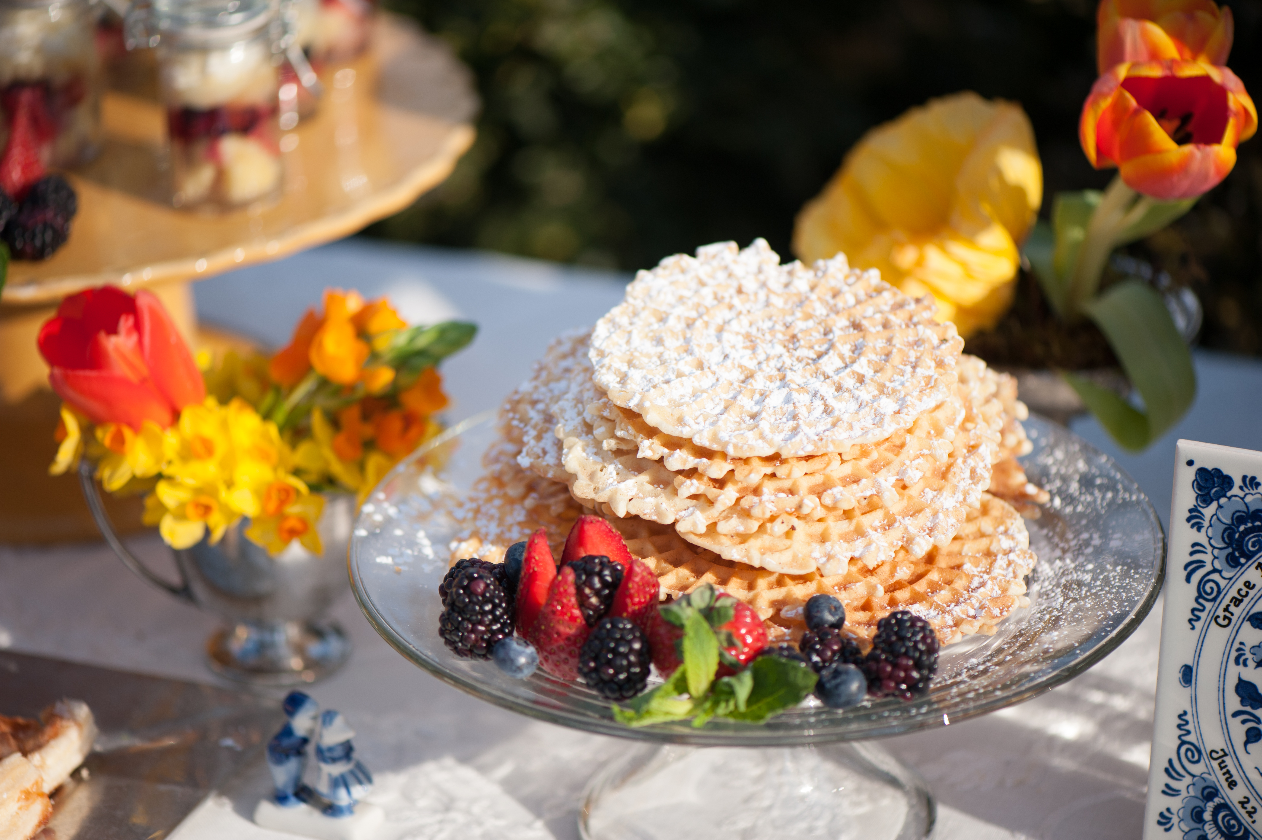 No dutch wedding is complete without amazing desserts, coffee and tea. Our coffee and tea bar included hot cocoa along with confections of Dutch pastry, chocolate dipped spoons, sugar crystal sticks, cream and honey. Our dessert table had an array of sweets and of course, “Dutch Orange” macarons.