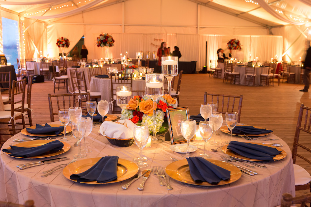 During cocktail hour the tent was transformed for dinner. Tables included seasonal blooms in Fall colors, great candlelight and the cutest table number signs (Lauren and Paddy’s dog :).
