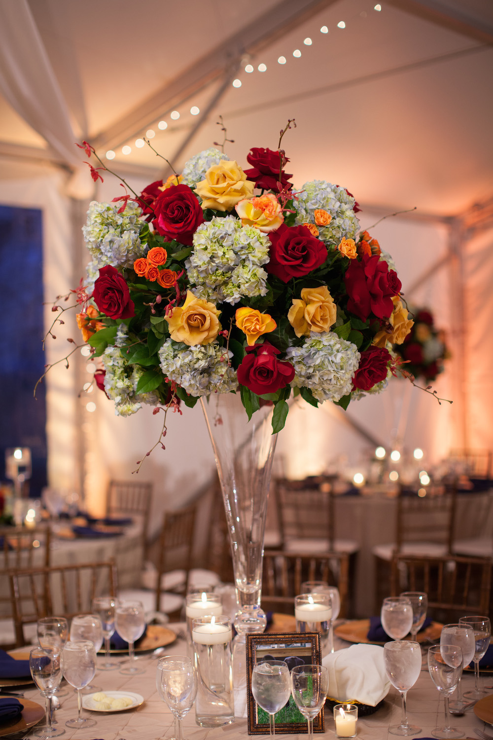 Photographer Kate Fine Art did a great job capturing the day, DJ Chris Laich Music Services kept the dance floor moving, and Catering by Uptown did a great job with the food and service. Their wedding included a lovely Fall color palette (navy, orange, red and champagne), stunning flowers from Edge Floral Event Designers, cupcakes, smores, and a super cute DIY photo booth.