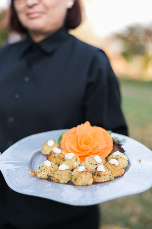 Cocktail hour included delicious passed hors d’oeurves, like this crab cakes, from R&R Catering.