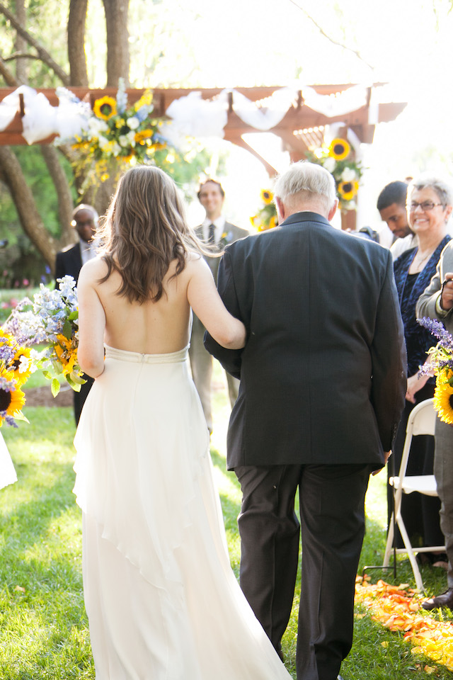 I loved her bouquet of sunflowers and blue delphinium made by a local florist, Diane Noll.