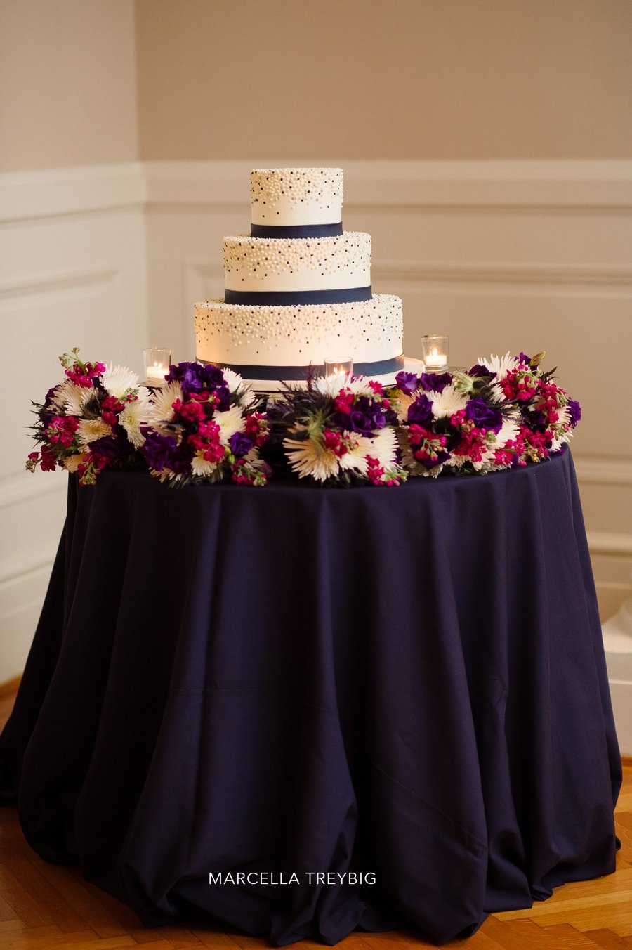 One of my favorite details was this gorgeous wedding cake by Fancy Cakes by Leslie. I love the classic and clean look. The bead work and navy trim adds a fun and preppy design that isn’t too busy.