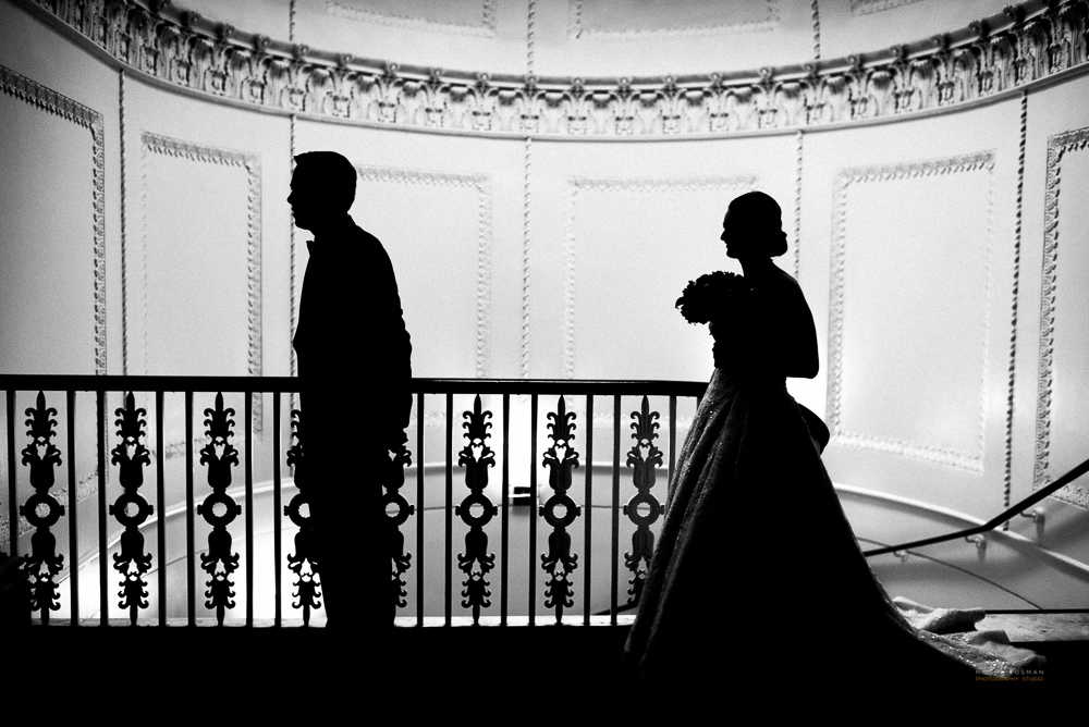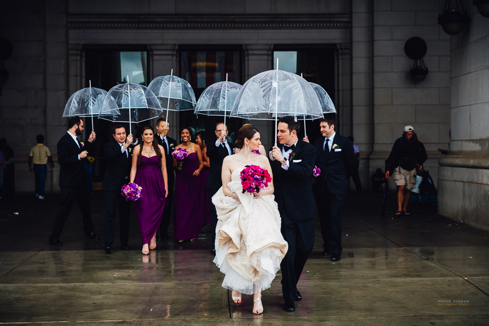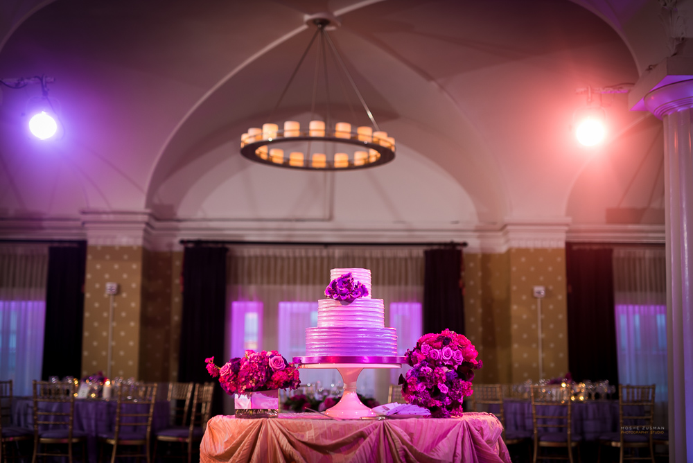 I’ve been very fortunate to have some wonderful clients over the years. Taryn and Harrison are included among those that I just clicked with right away. It was wonderful to help pull the look and details together for their elegant and romantic wedding at Hotel Monaco in Washington, DC. I loved the variety or purples we played with (Taryn’s favorite color), with the accents of gold, their ombre cake and lots of candlelight. It rained buckets on their wedding day, but we had some clear umbrellas on hand, just in case they decided to leave the hotel for photos. Here are some of the highlights shared by Moshe Zusman Photography Studio, the full vendor list is below.